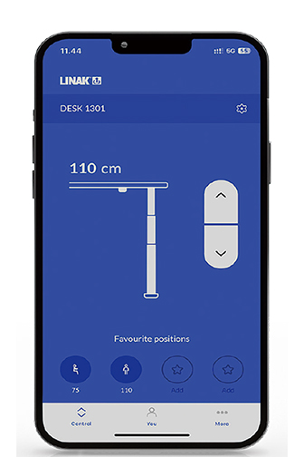 แอปพลิเคชันนี้ใช้เทคโนโลยี Bluetooth® Low Energy แอปจะเชื่อมต่อกับโต๊ะทำงานของคุณโดยอัตโนมัติและช่วยให้ควบคุมได้อย่างง่ายดาย ตั้งแต่การปรับความสูง