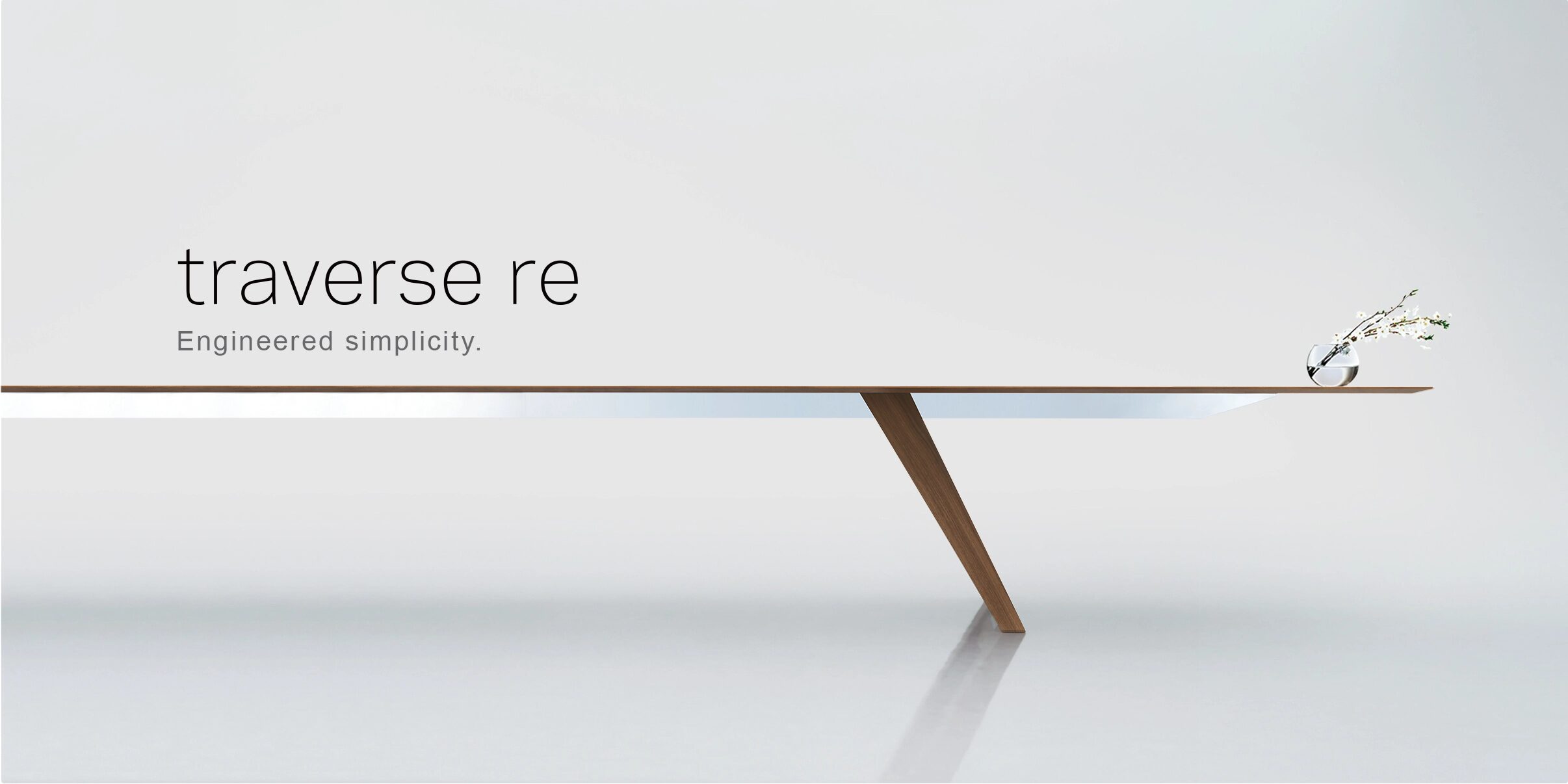 Traverse 有六种精美、优质的木纹饰面可供选择。桌面各部分之间无缝衔接,形成一个美丽的跨度。