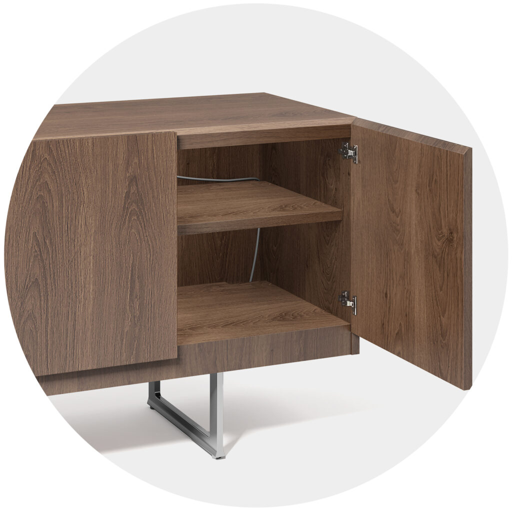 每款设计都巧妙地隐藏了集成技术,为未来发展提供了灵活性。随着科技工具向无线办公方向发展,traverse将电源和数据置于其 Tech Cradle 中——一个巧妙地隐藏在桌面下方的小型连接盒。线缆隐藏在桌腿内,确保外观精致,并提升空间利用率。
