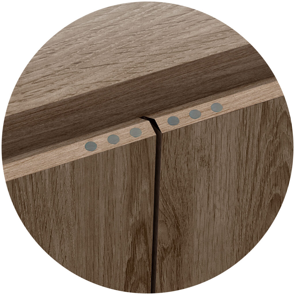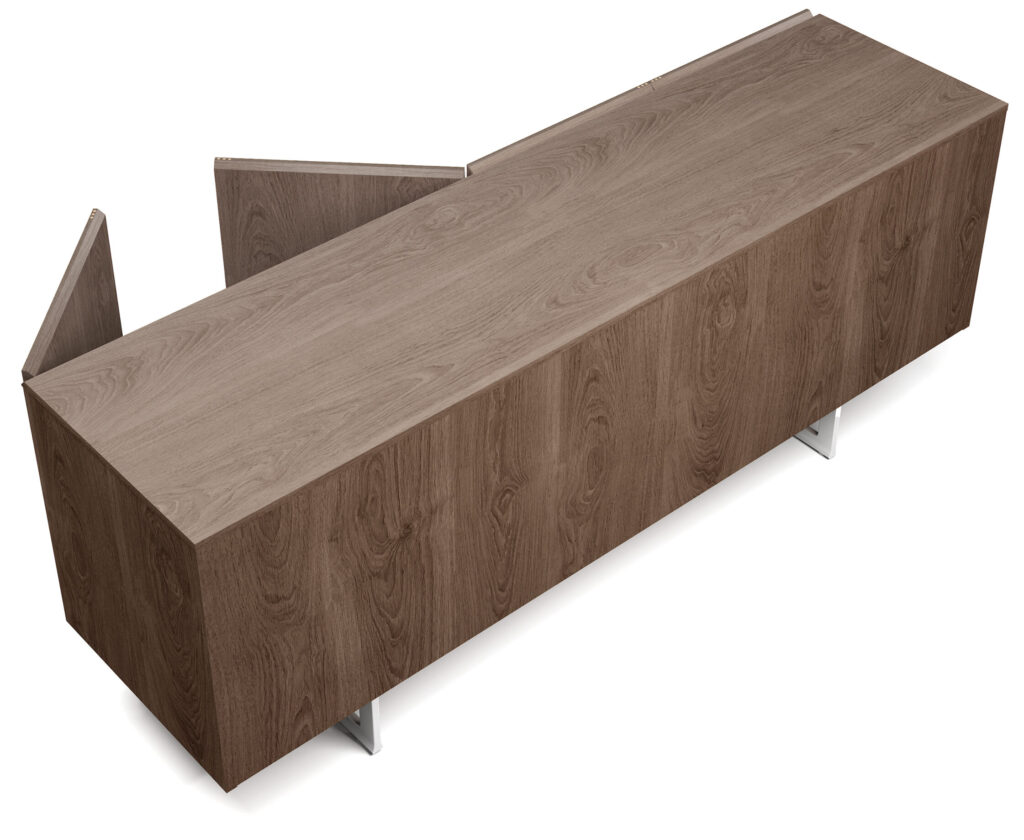 Traverse 有六种精美、优质的木纹饰面可供选择。桌面各部分之间无缝衔接,形成一个美丽的跨度。
